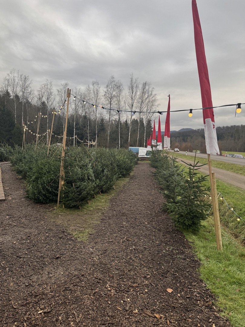Die Atmosphäre ist herrlich familiär: Der Duft von Tannennadeln liegt in der Luft, Kinder laufen fröhlich zwischen den Bäumen umher und überall spürt man echte Weihnachtsstimmung. 🌲 Wir wollten dieses Mal eigentlich selbst sägen, haben uns dann aber für einen größeren, bereits vorbereiteten Baum entschieden – die Auswahl war einfach zu schön.